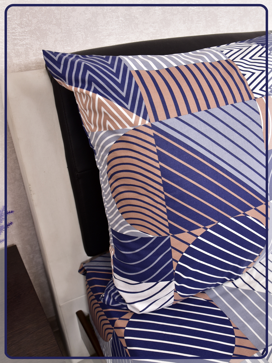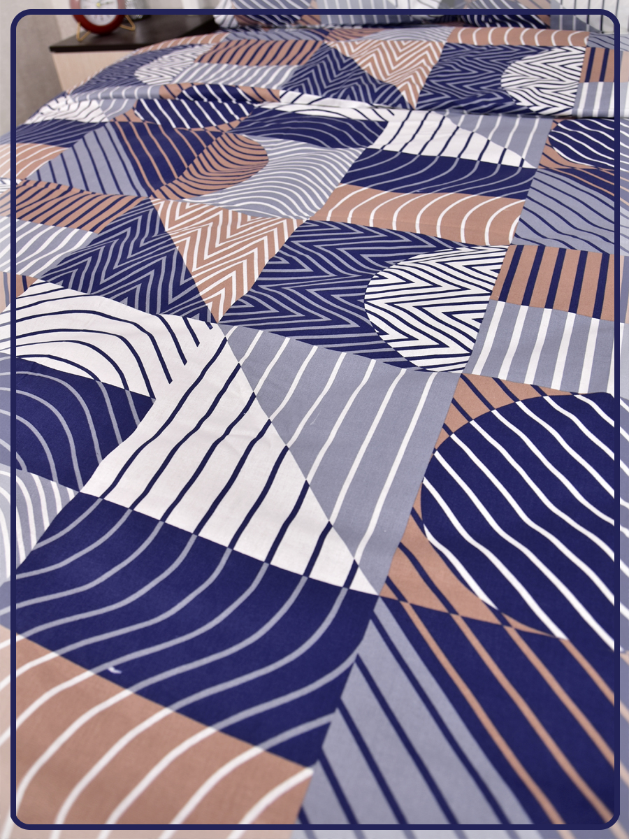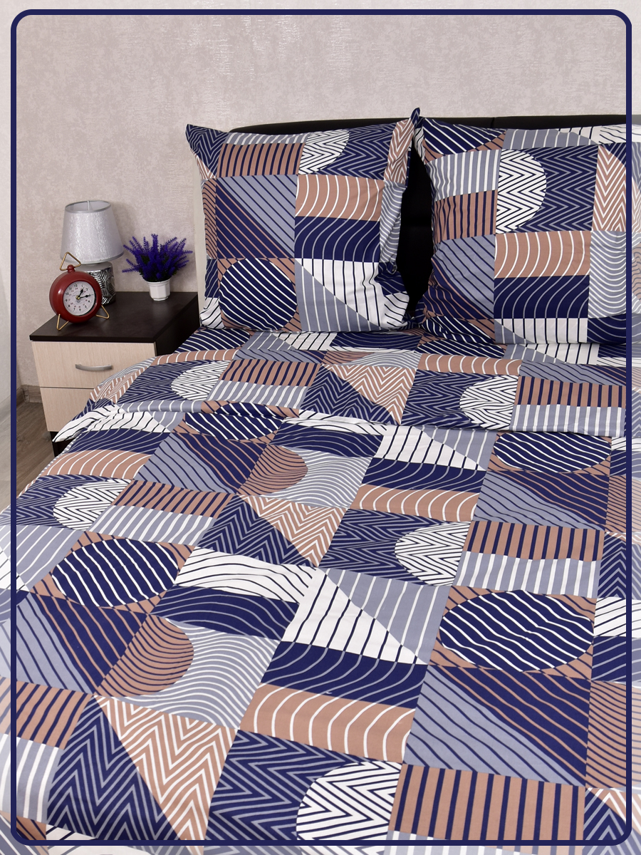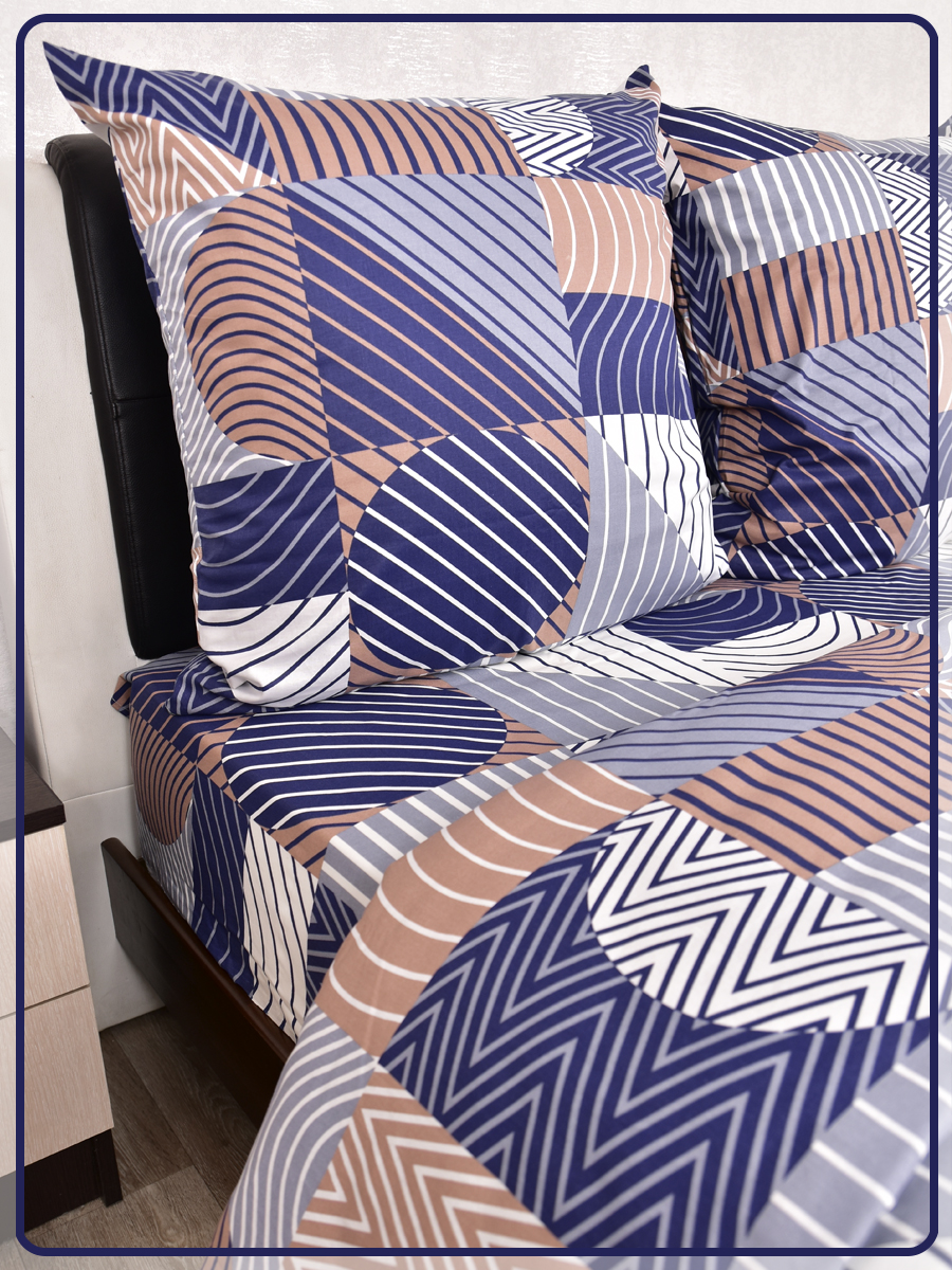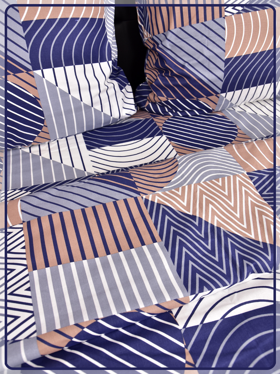 Все двуспальные КПБ имеют пришивной клин на простыне и пододеяльнике, так как ткань для этих комплектов идёт шириной 150 сантиметров, а для двуспального белья этой ширины не достаточно.