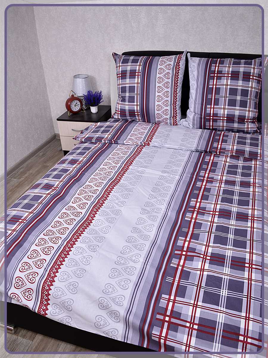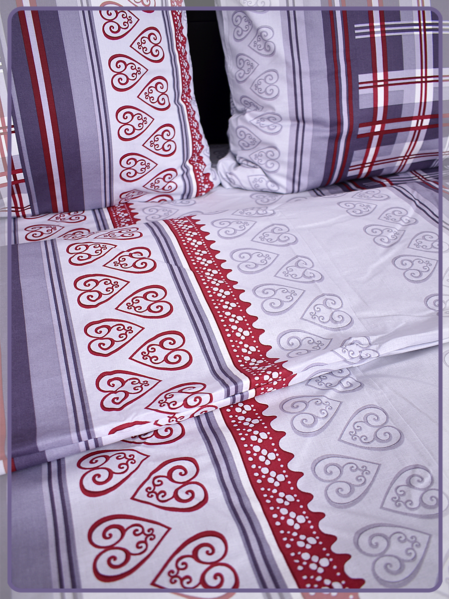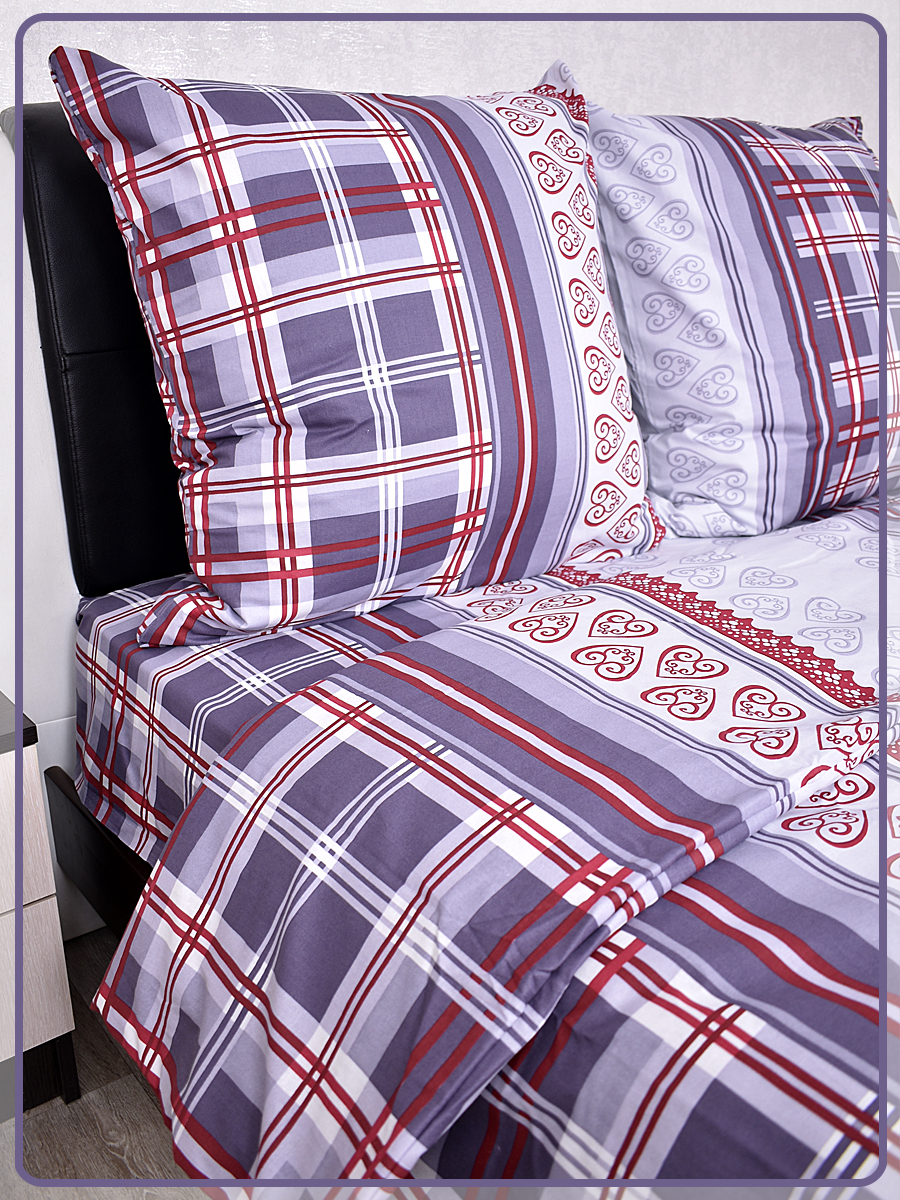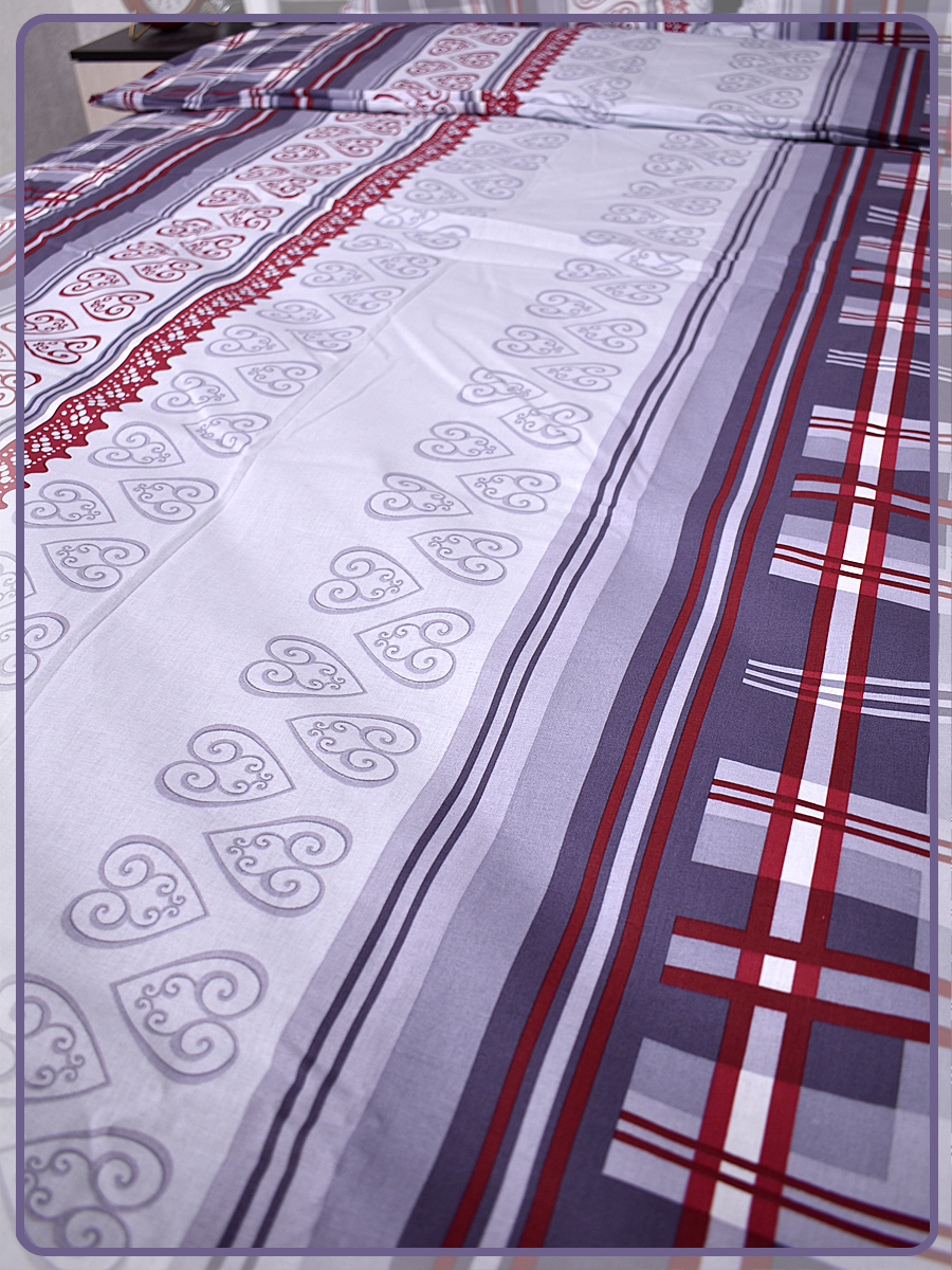 Все двуспальные КПБ имеют пришивной клин на простыне и пододеяльнике, так как ткань для этих комплектов идёт шириной 150 сантиметров, а для двуспального белья этой ширины не достаточно.