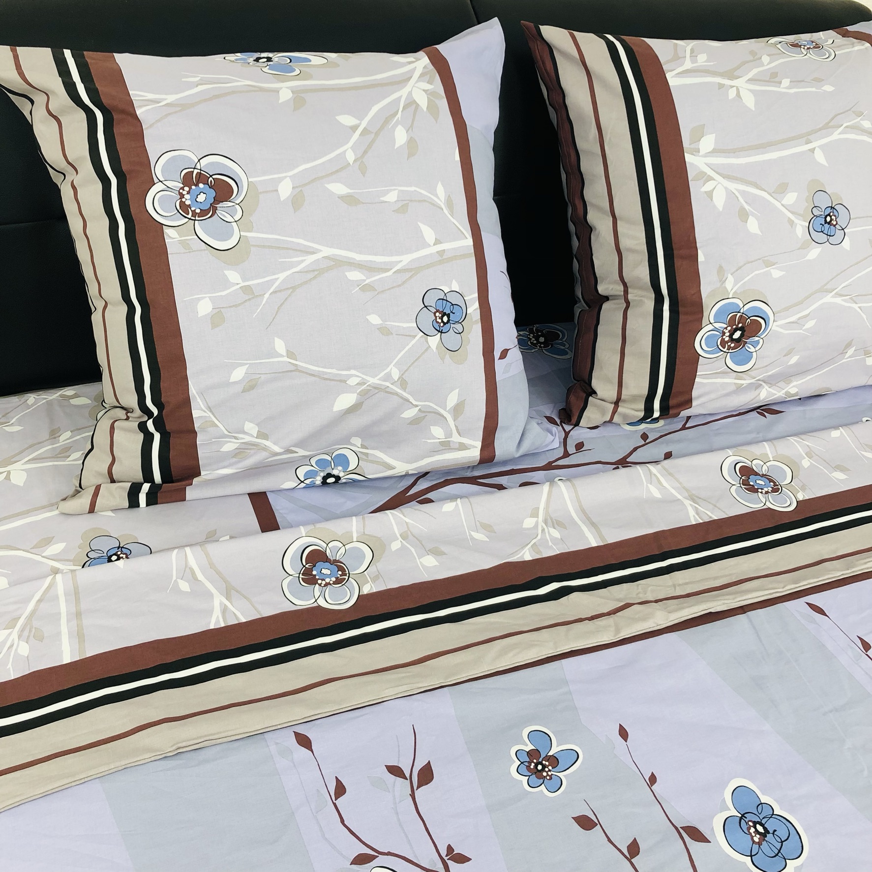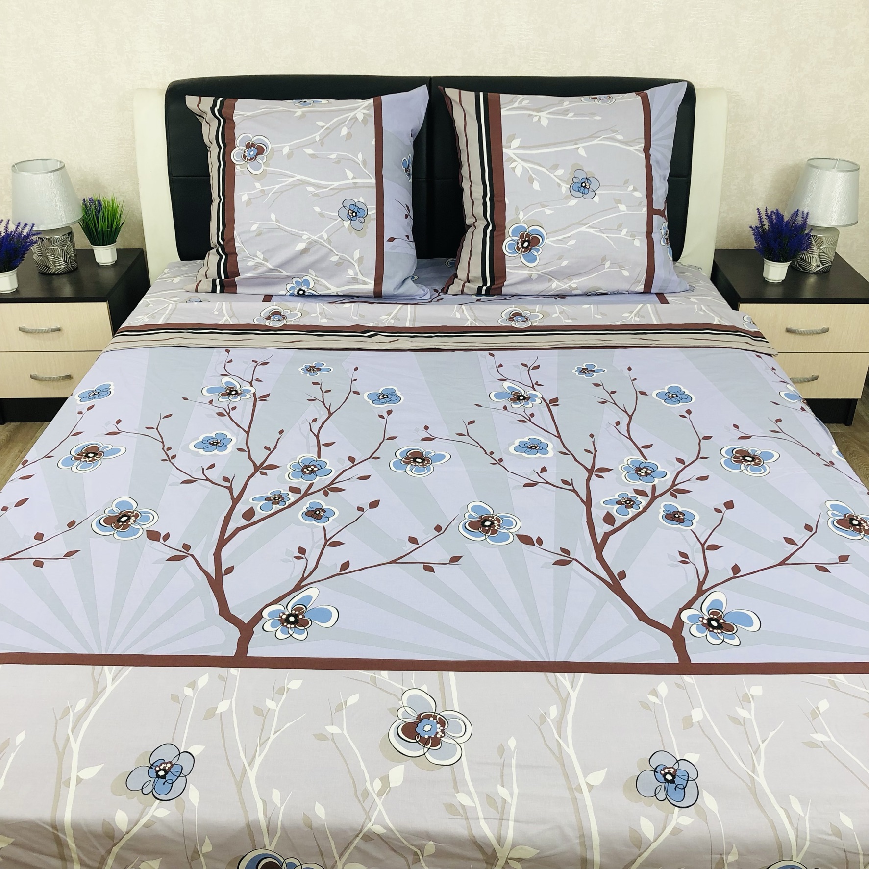 Все двуспальные КПБ имеют пришивной клин на простыне и пододеяльнике, так как ткань для этих комплектов идёт шириной 150 сантиметров, а для двуспального белья этой ширины не достаточно.