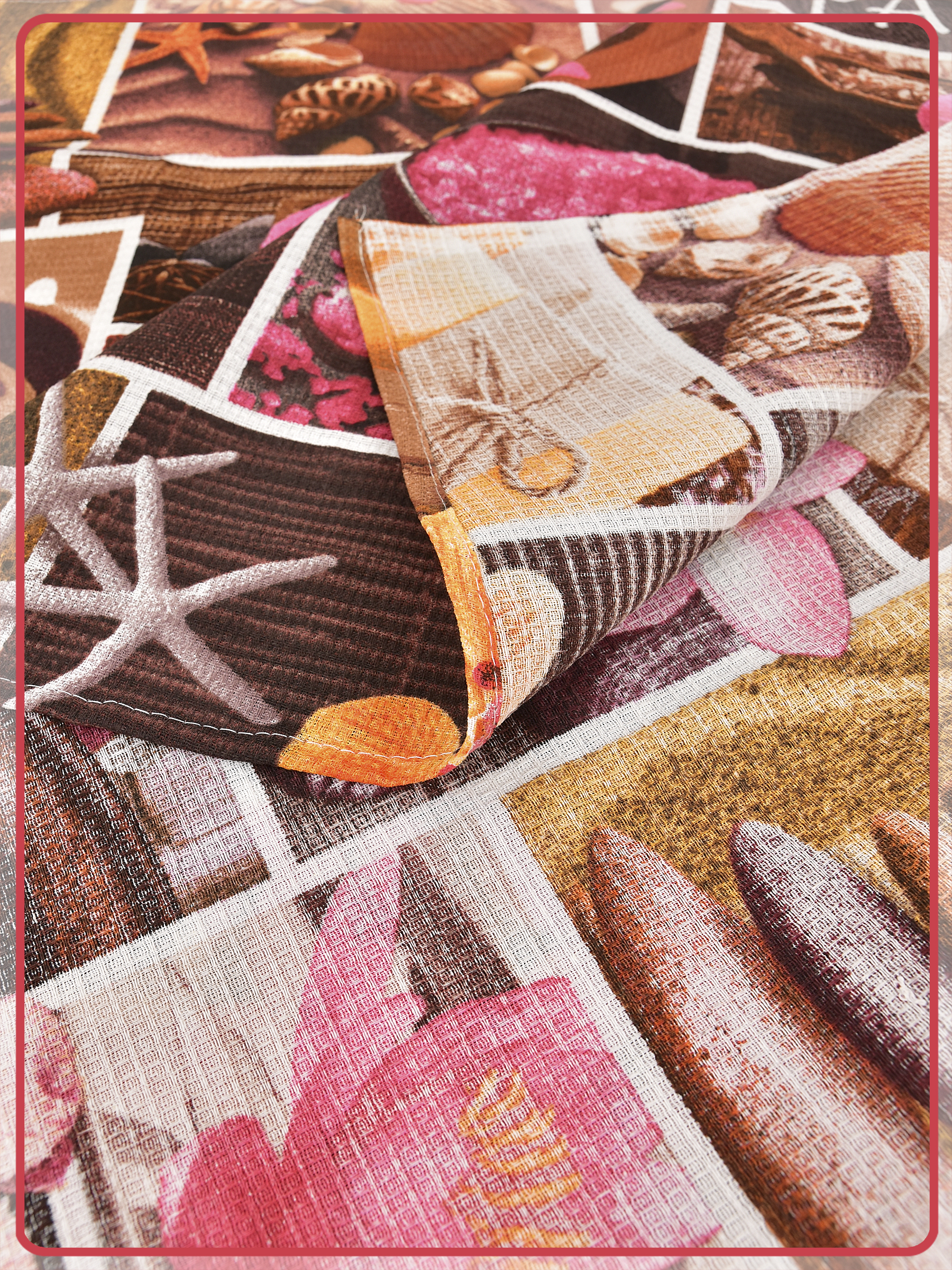 Вафельное полотно хорошо впитывает влагу, имеет длительный срок службы и устойчивость к износу, по этому оптимально подходит в качестве пляжных полотенец. Ткань на основе 100% хлопка гарантирует гипоаллергенность, мягкость и долговечность изделий.
