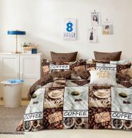 Комплект постельного белья из поплина с кофейной тематикой, цвет коричневый.