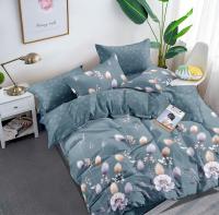 Комплект постельного белья из поплина с цветочным рисунком, цвет серый.